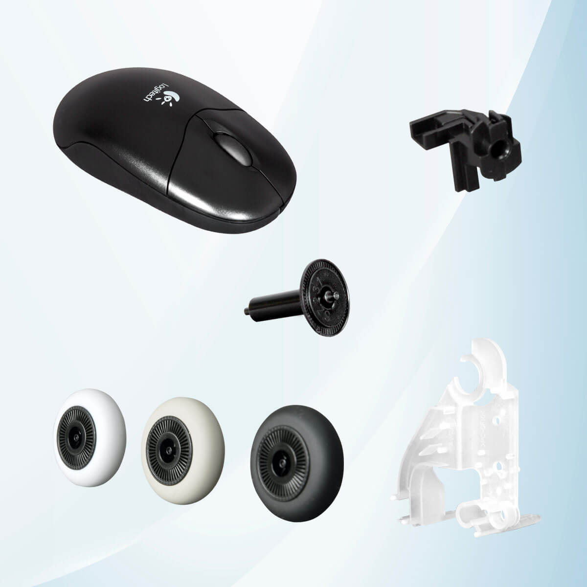 - Precision-molded plastic parts for mouse and other peripheral devices